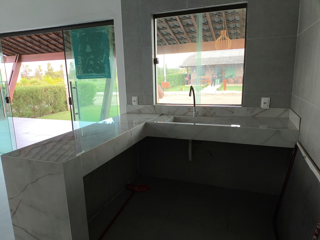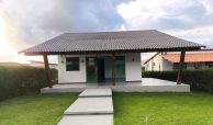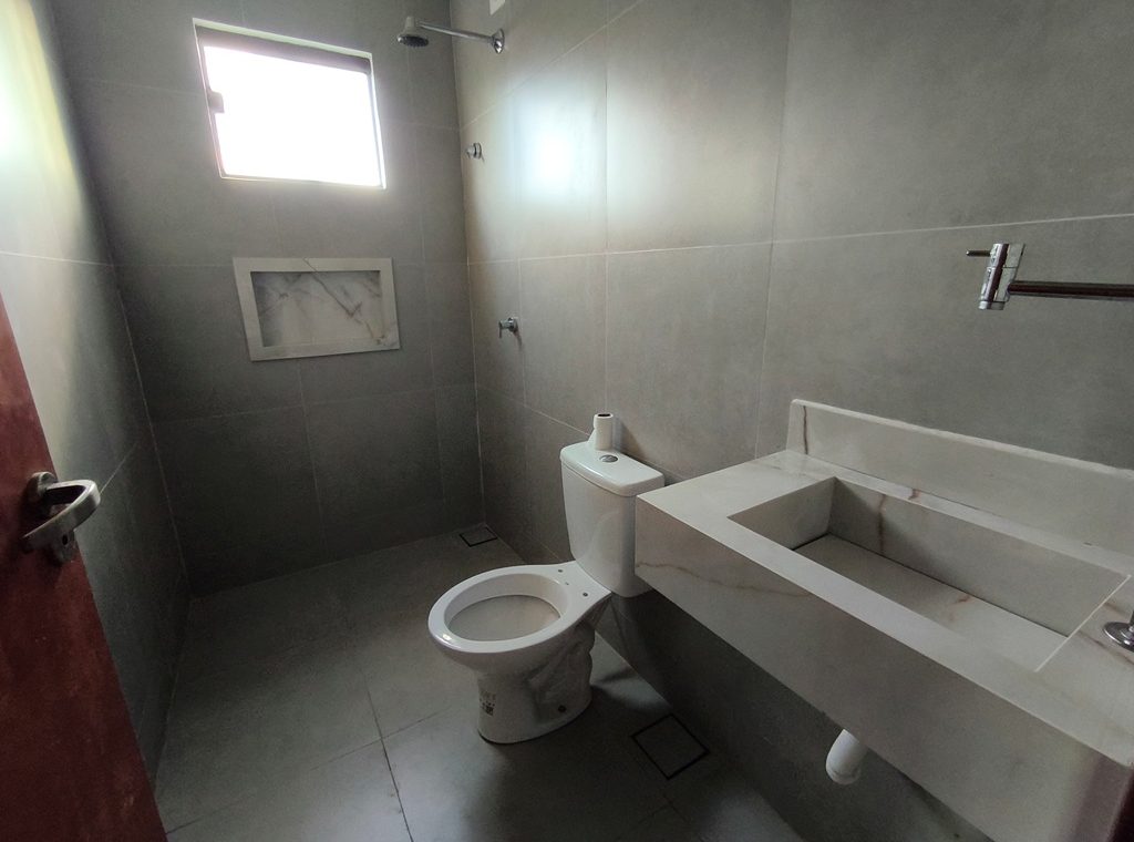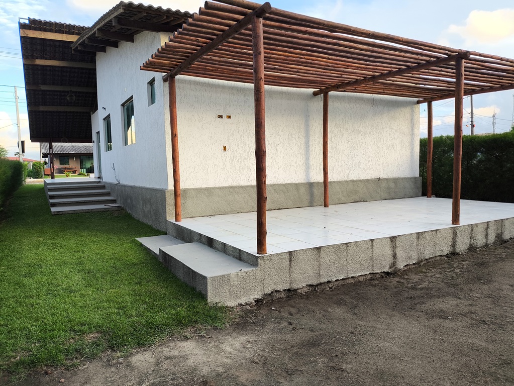 Casa com 150m² de área construída, terreno 12×30 com 3 quartos sendo 2 suítes, terraço, sala integrada a cozinha, área de serviço, wc social, cisterna.