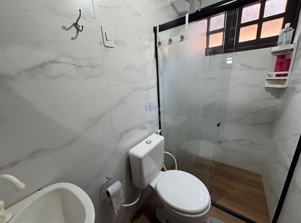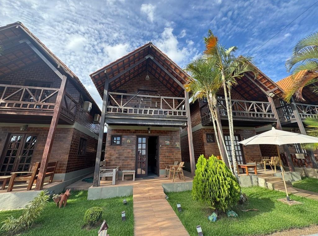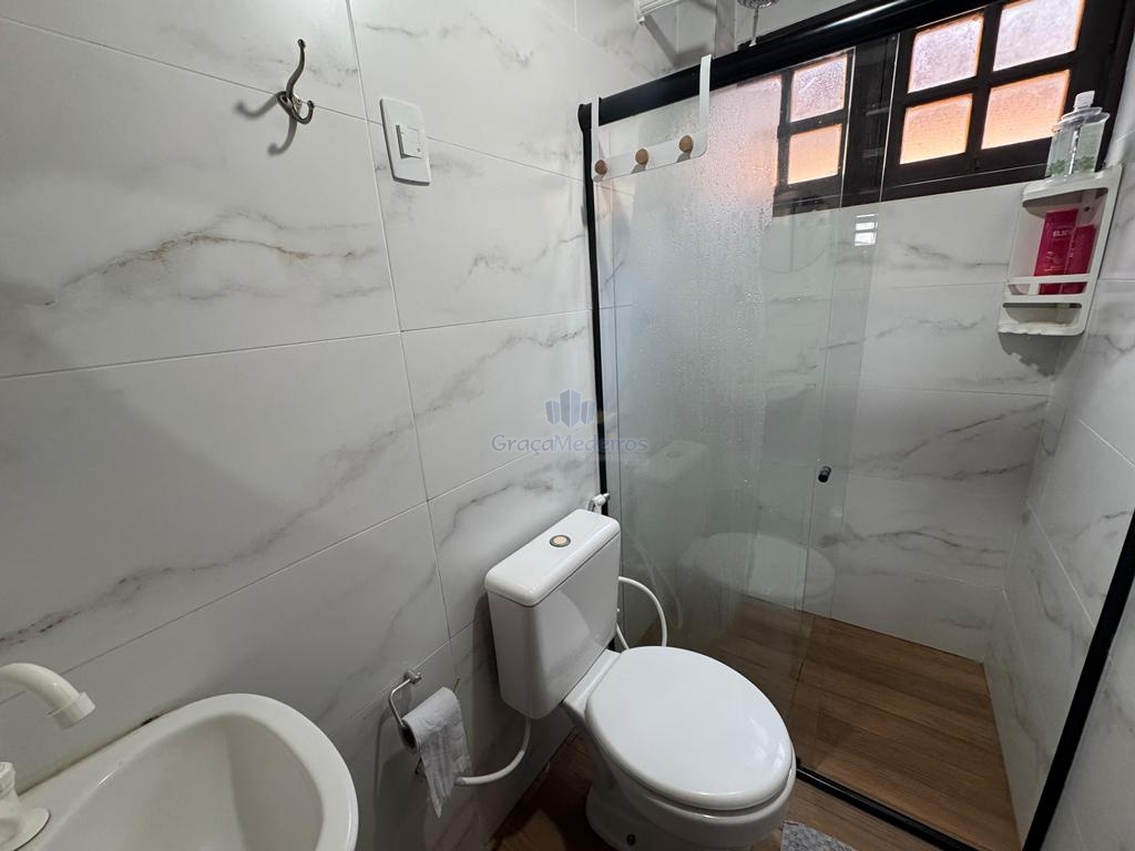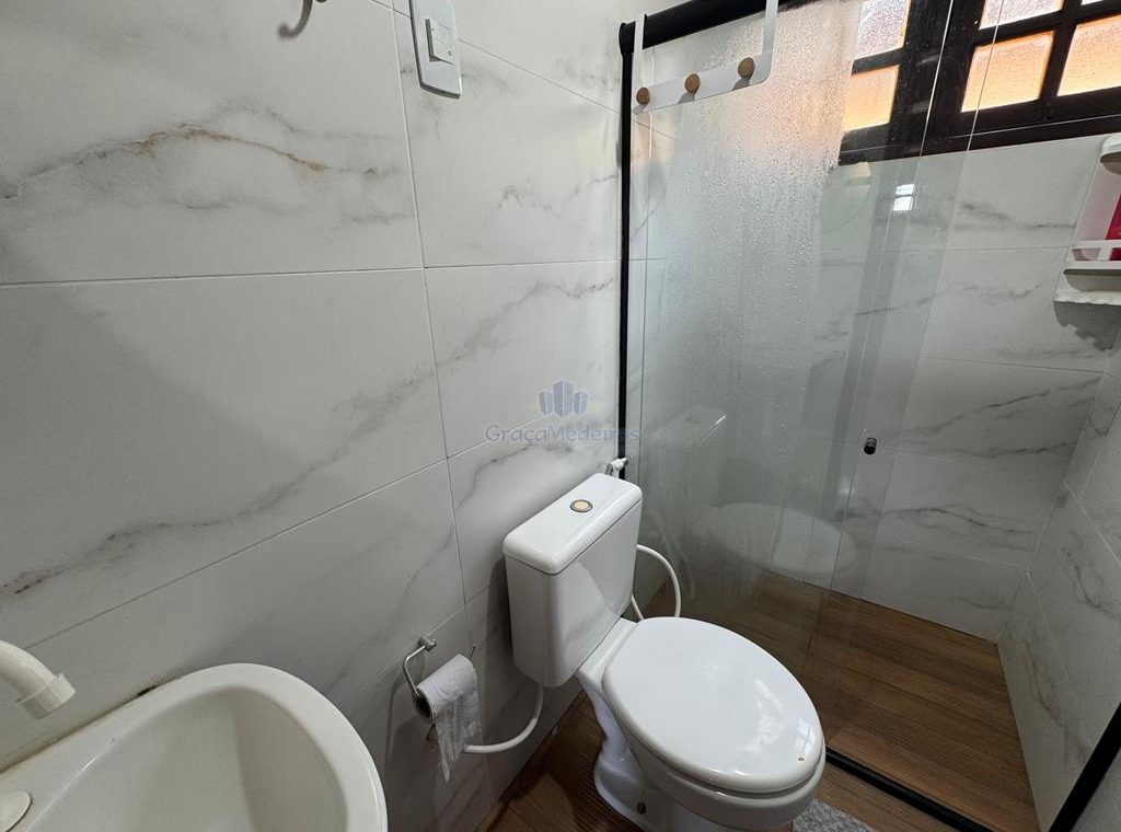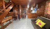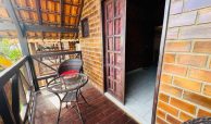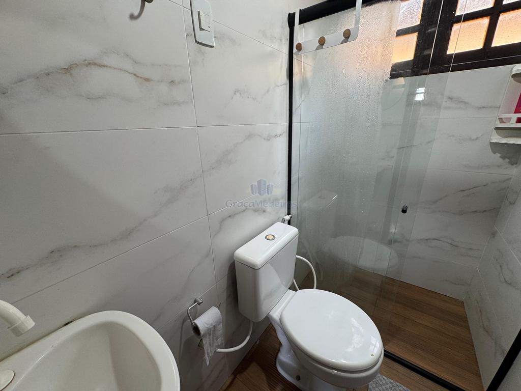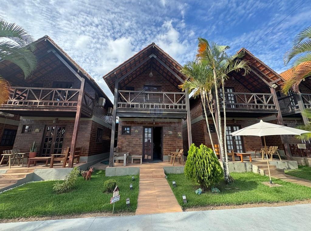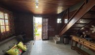 Chalé mobiliado, 64,32 m², 2 quartos, terraço, sala, cozinha americana, 2 banheiros sociais, área de serviço.
