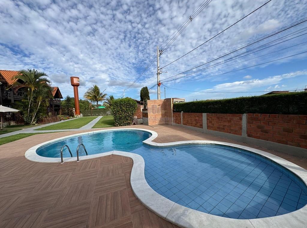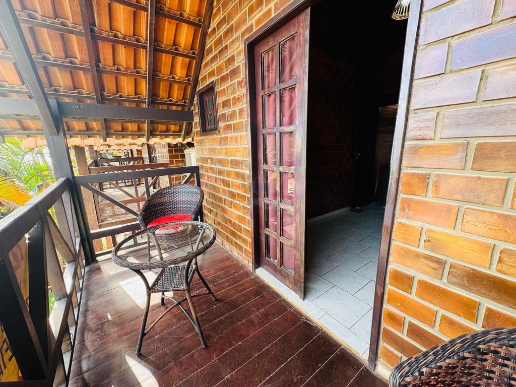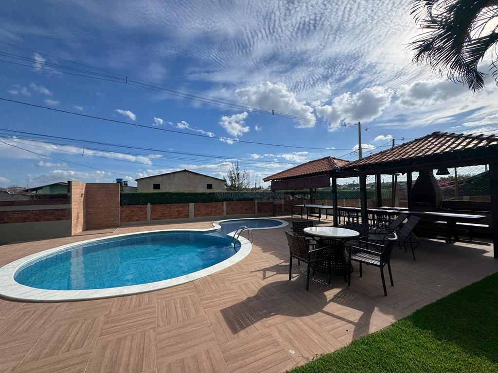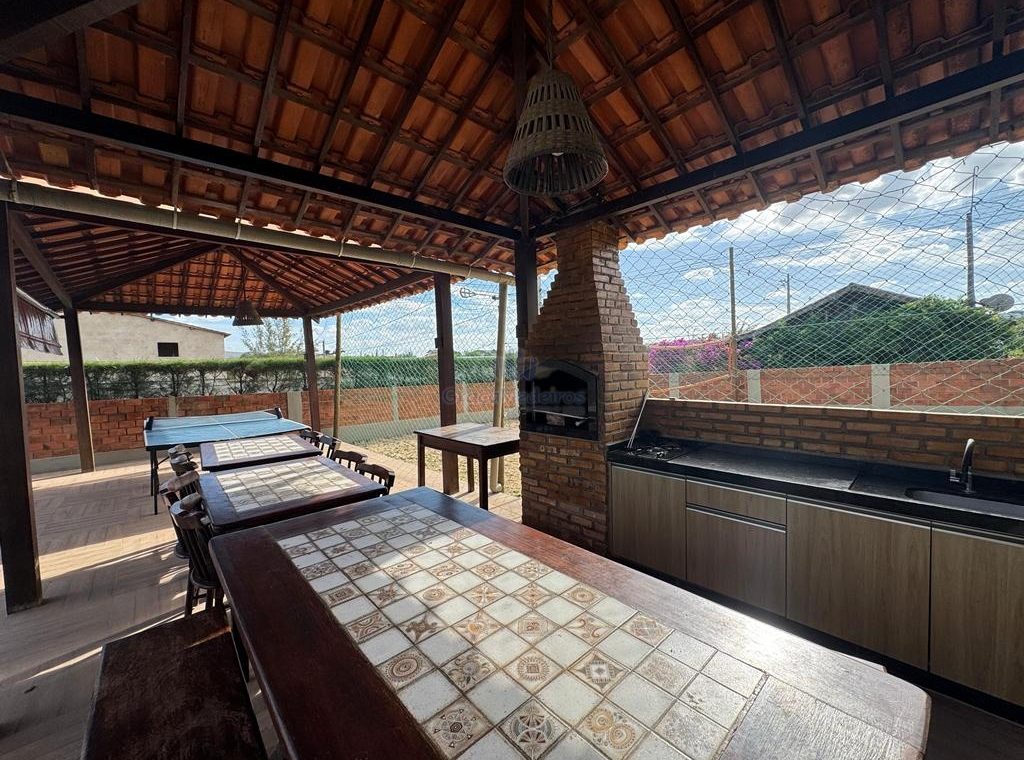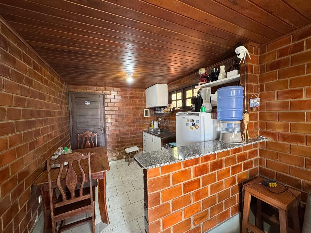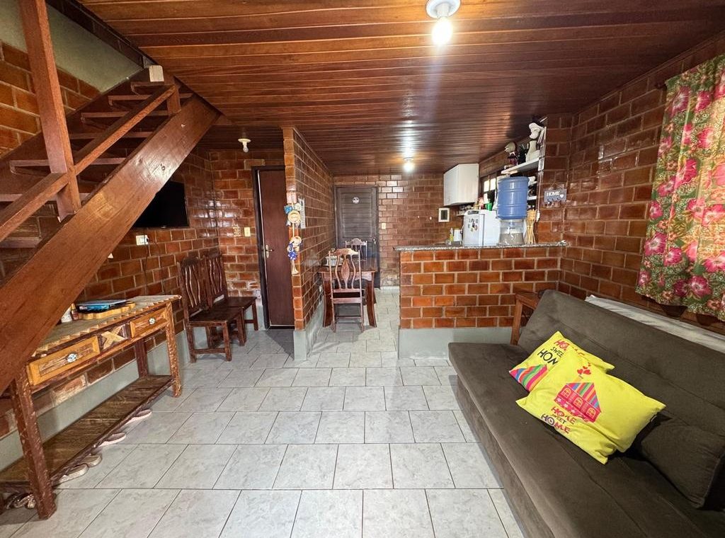 Chalé mobiliado, 64,32 m², 2 quartos, terraço, sala, cozinha americana, 2 banheiros sociais, área de serviço.