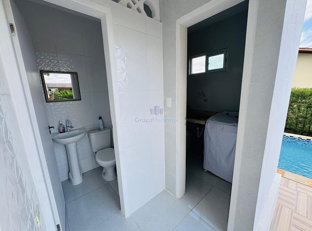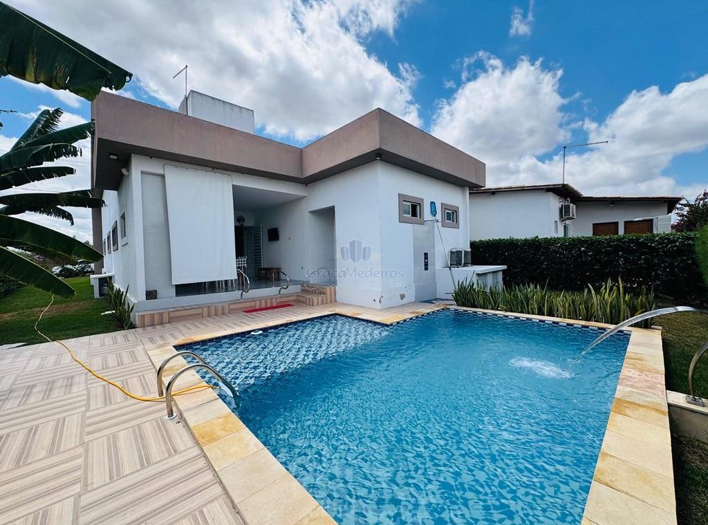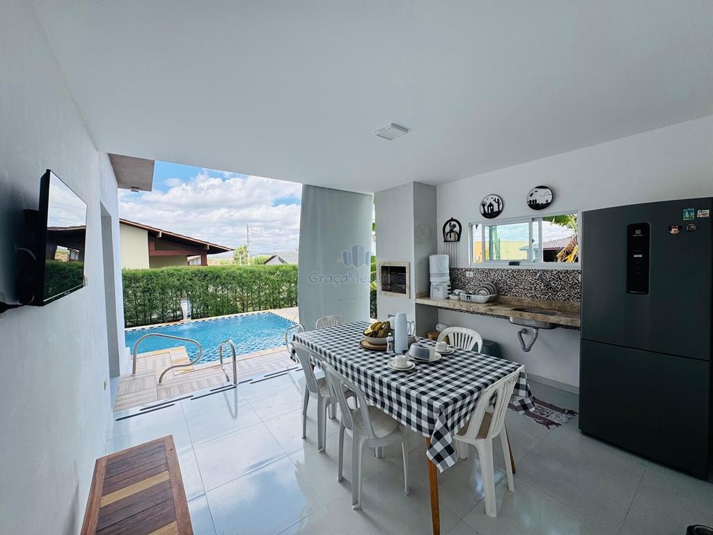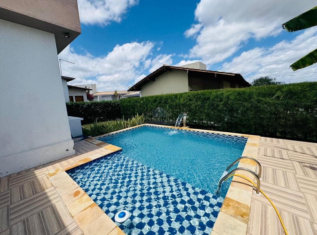 A casa conta com 3 quartos sendo 1 suítes, wc social sala de estar e jantar, cozinha americana, área gourmet área de serviço, e piscina.