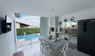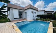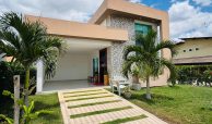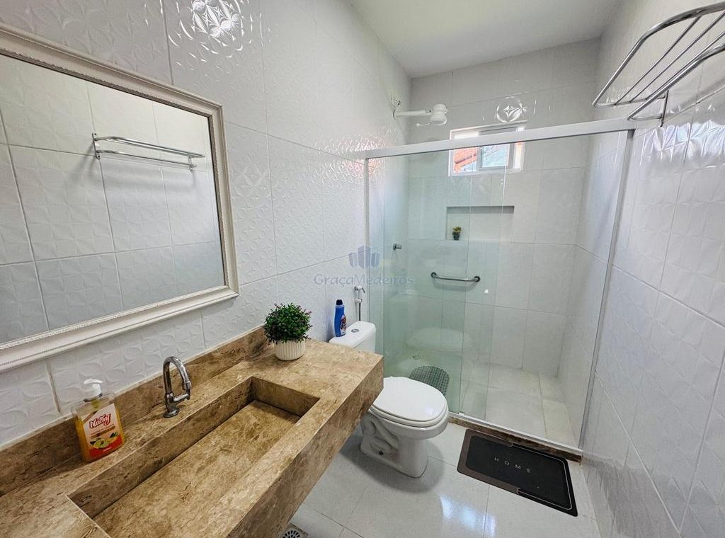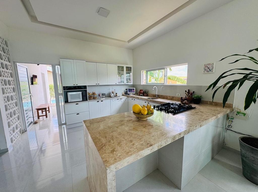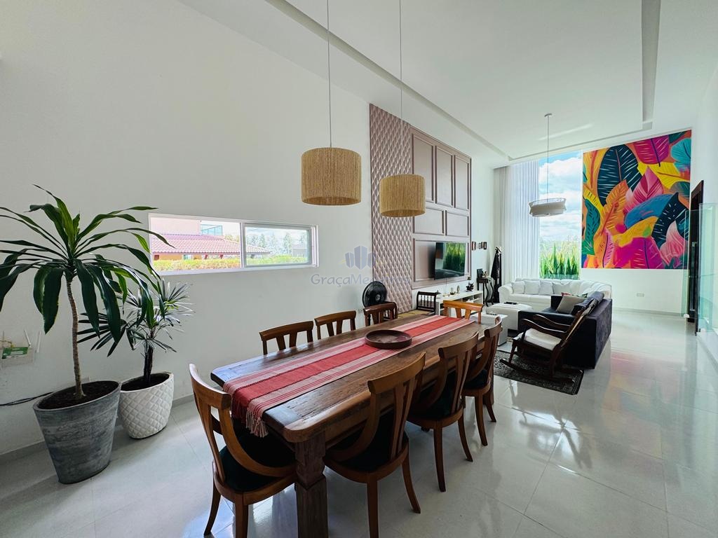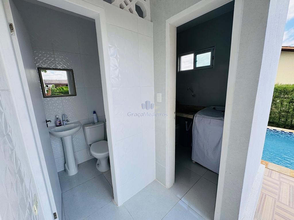 A casa conta com 3 quartos sendo 1 suítes, wc social sala de estar e jantar, cozinha americana, área gourmet área de serviço, e piscina.