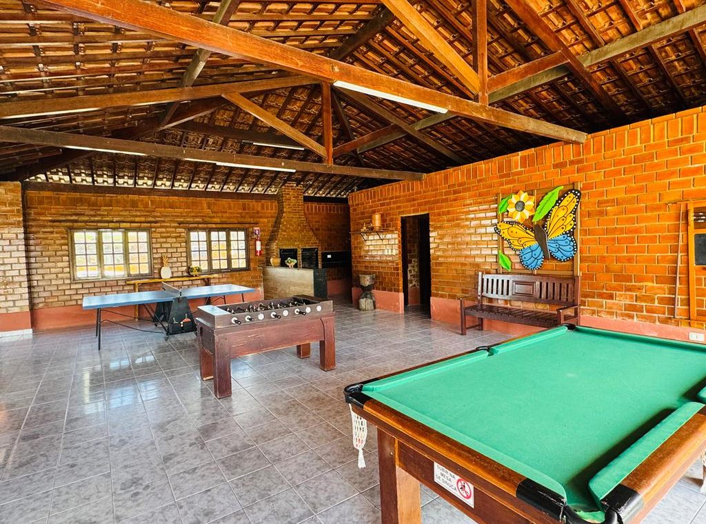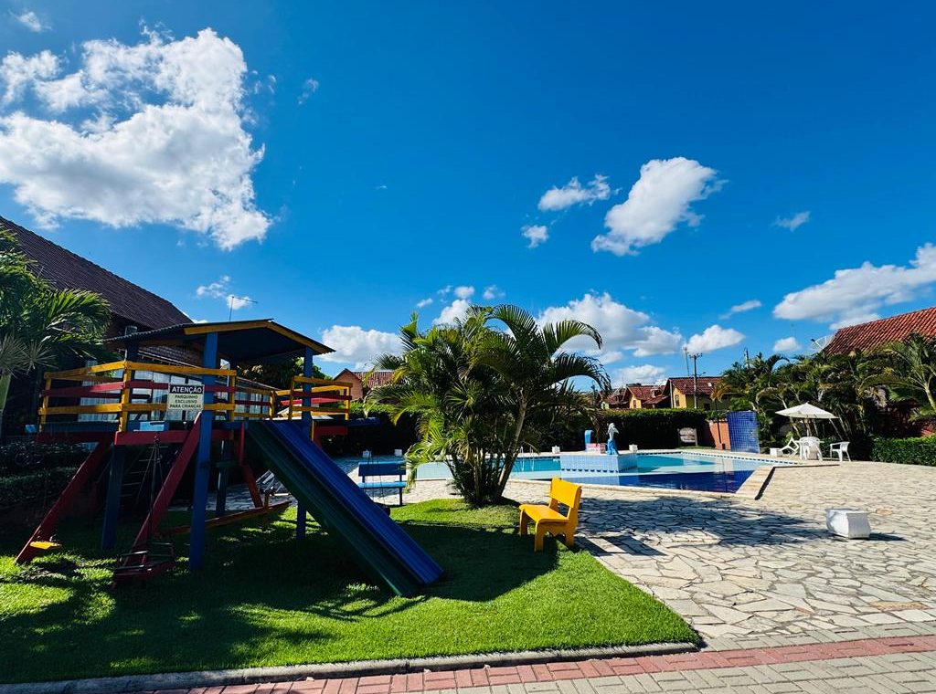 Condomínio com segurança 24h, piscina, salão de festas, jogos, playground, campo e quadra.