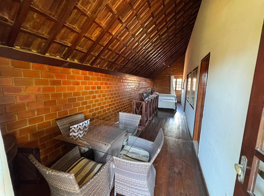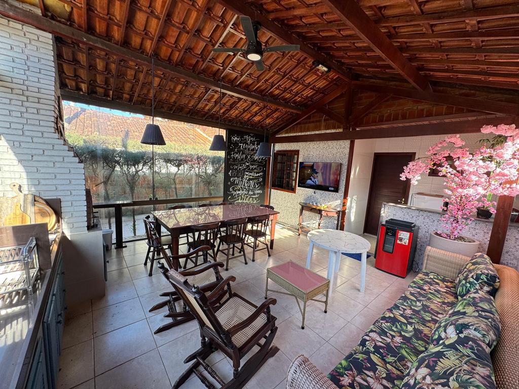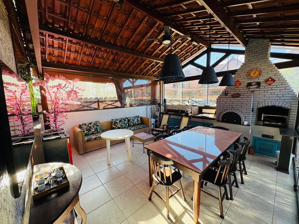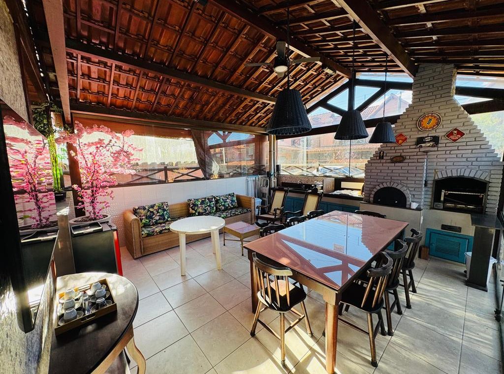 Imóvel com 150m², 4 quartos sendo 3 suítes, espaço gourmet com churrasqueira e forno de pizza, sala ampla, mezanino, varanda e terraço.