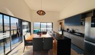 Os ambientes sociais foram projetados para oferecer fluidez e sofisticação: estar, jantar, cozinha e área gourmet integram-se de forma harmoniosa, enquanto a varanda em blindex adiciona leveza e luminosidade.