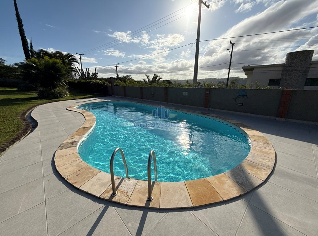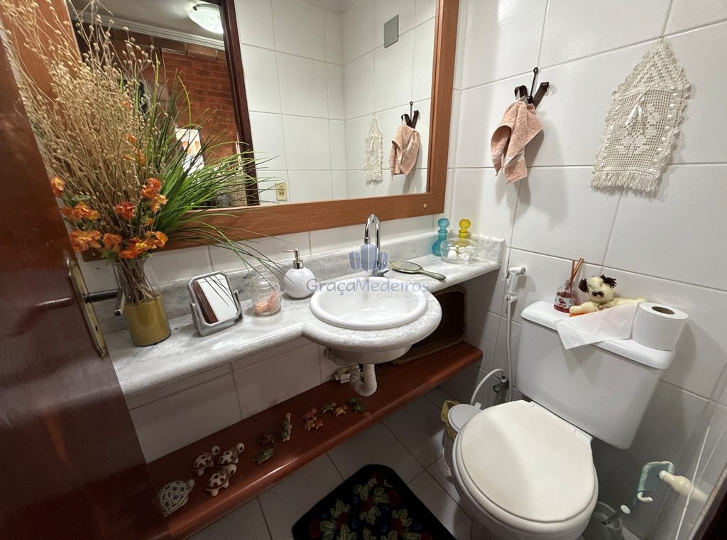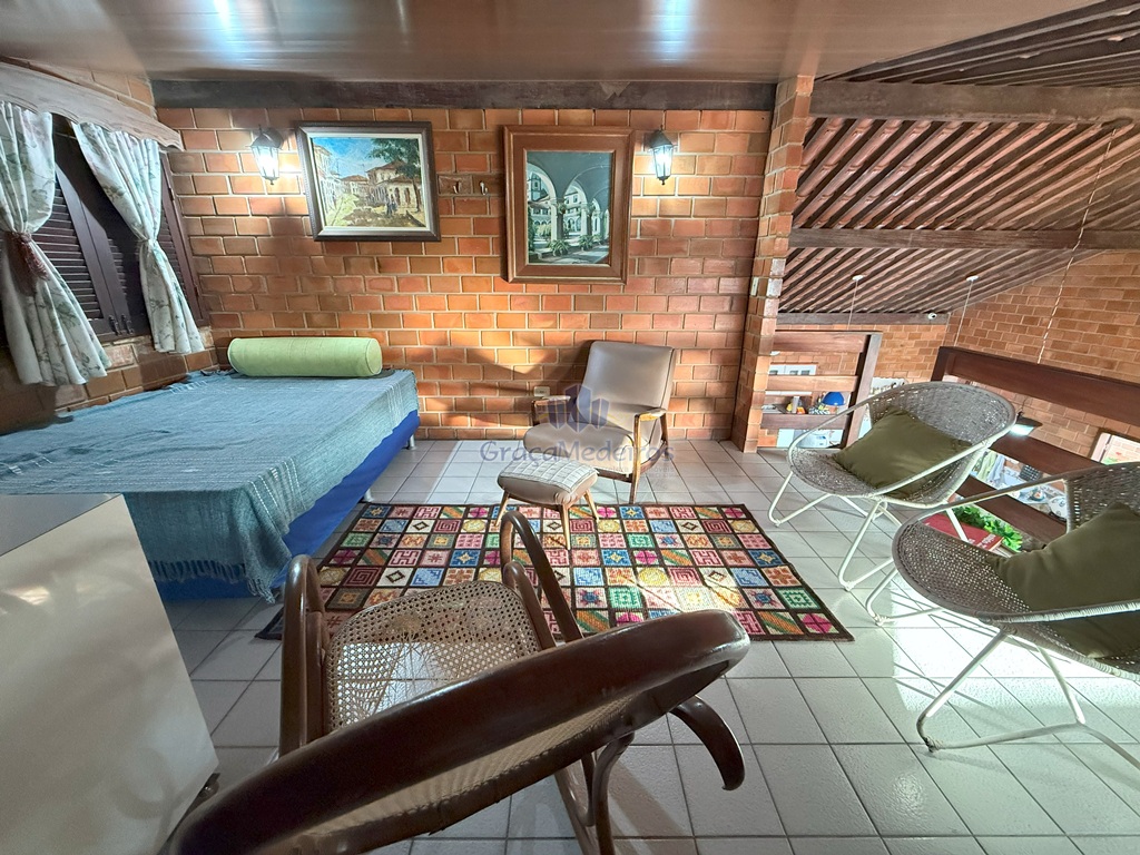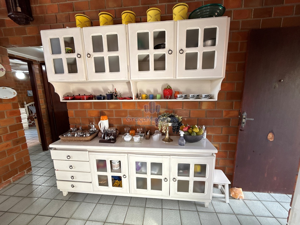 São três suítes, sala para dois ambientes, cozinha estilo americana, mezanino, terraço, lavabo, dependência completa.