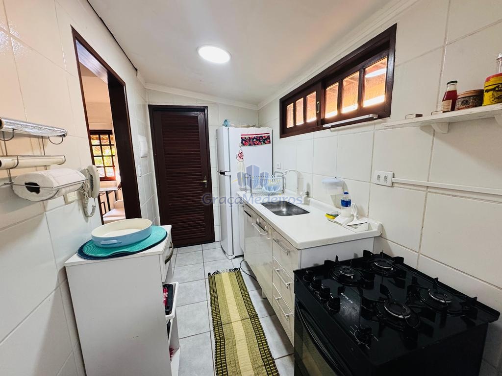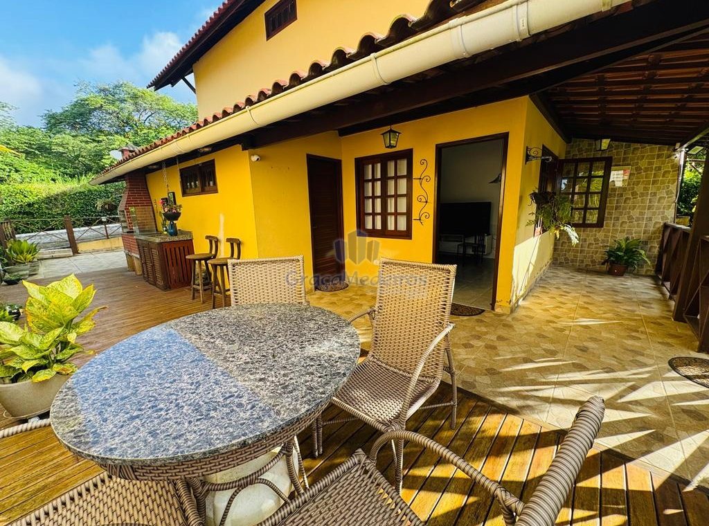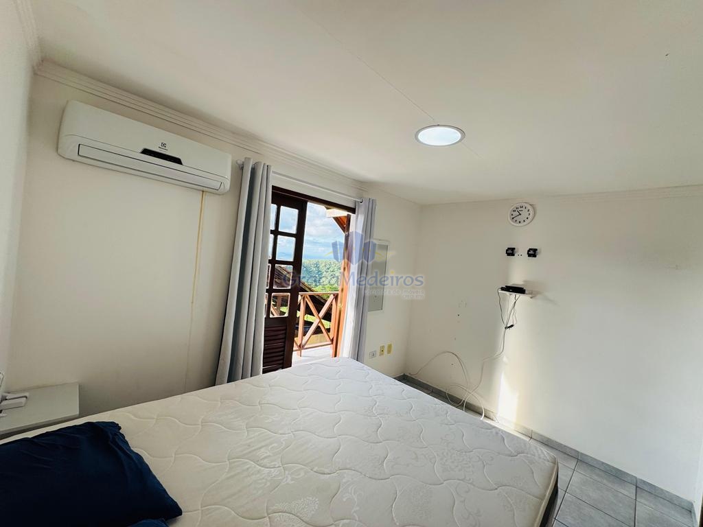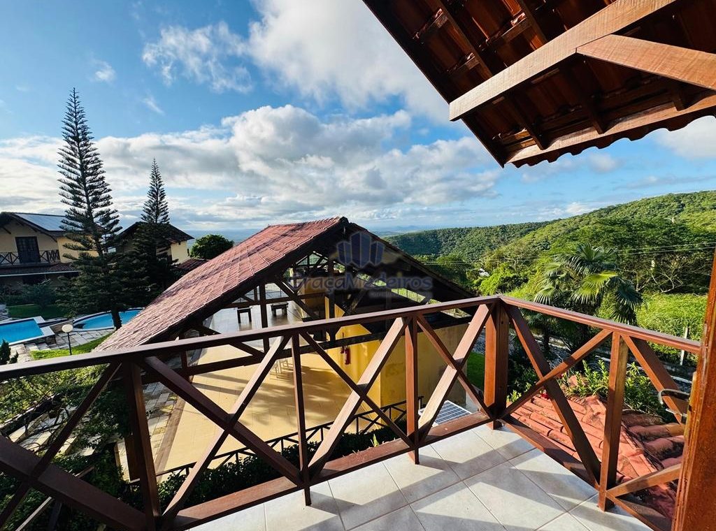 Chalé com 3 quartos sendo 2 suítes com varanda, terraço, espaço gourmet, sala, cozinha, wc social, área de serviço.