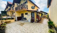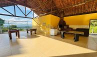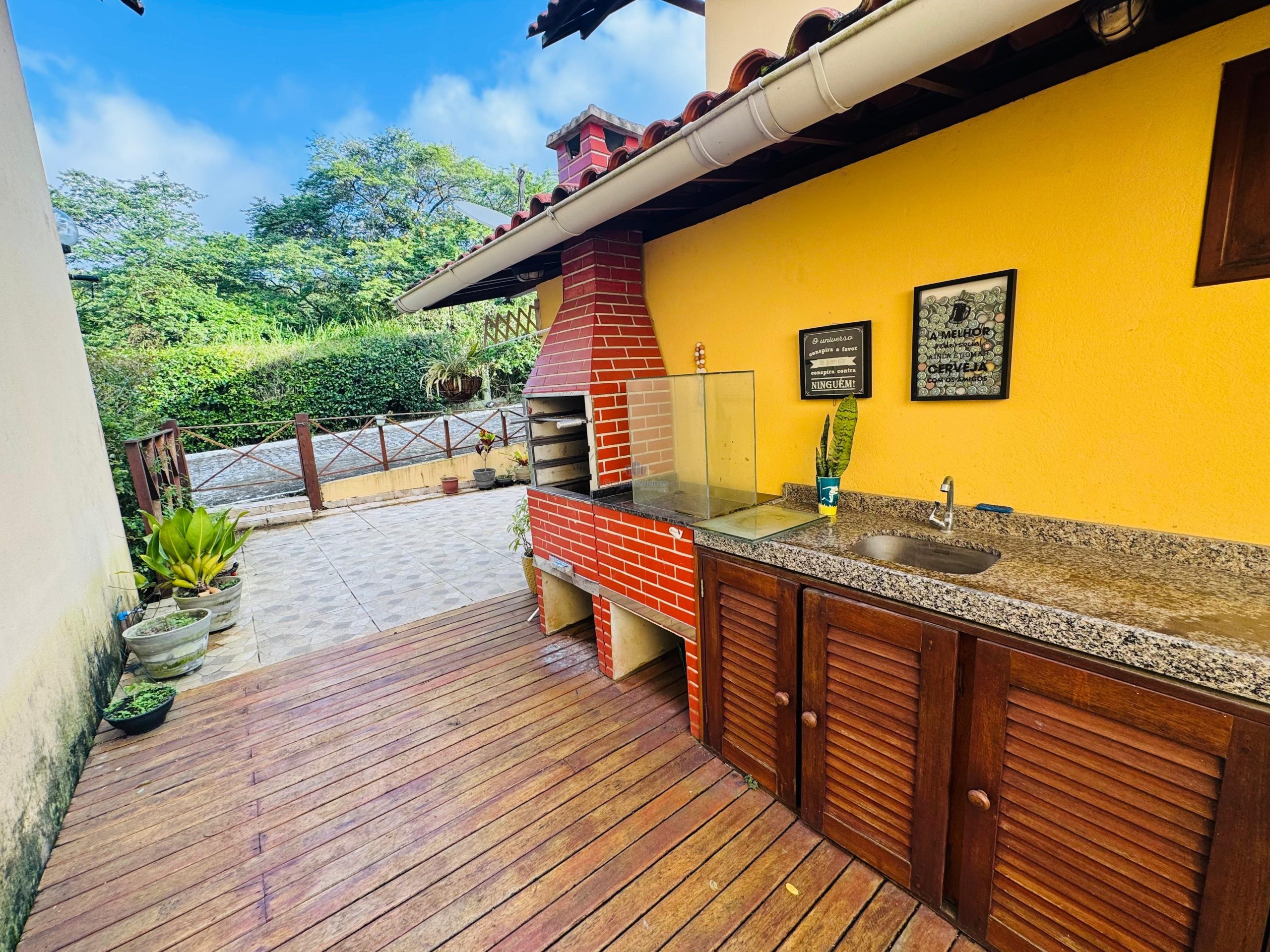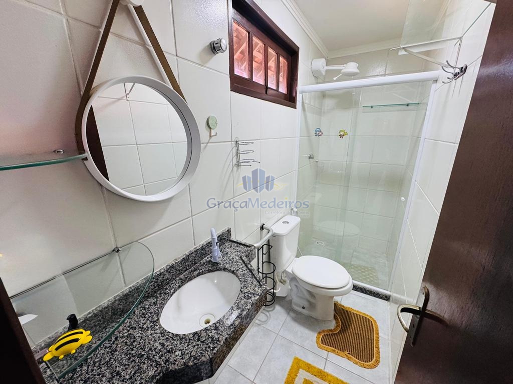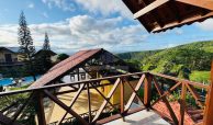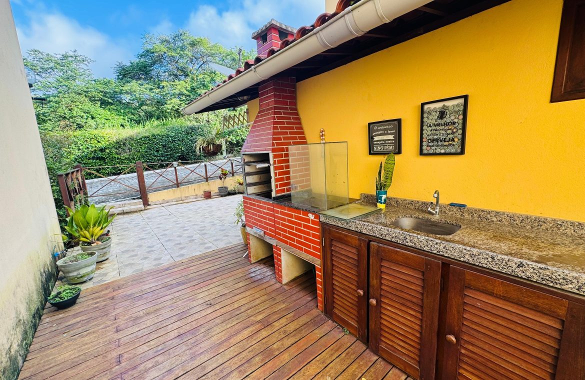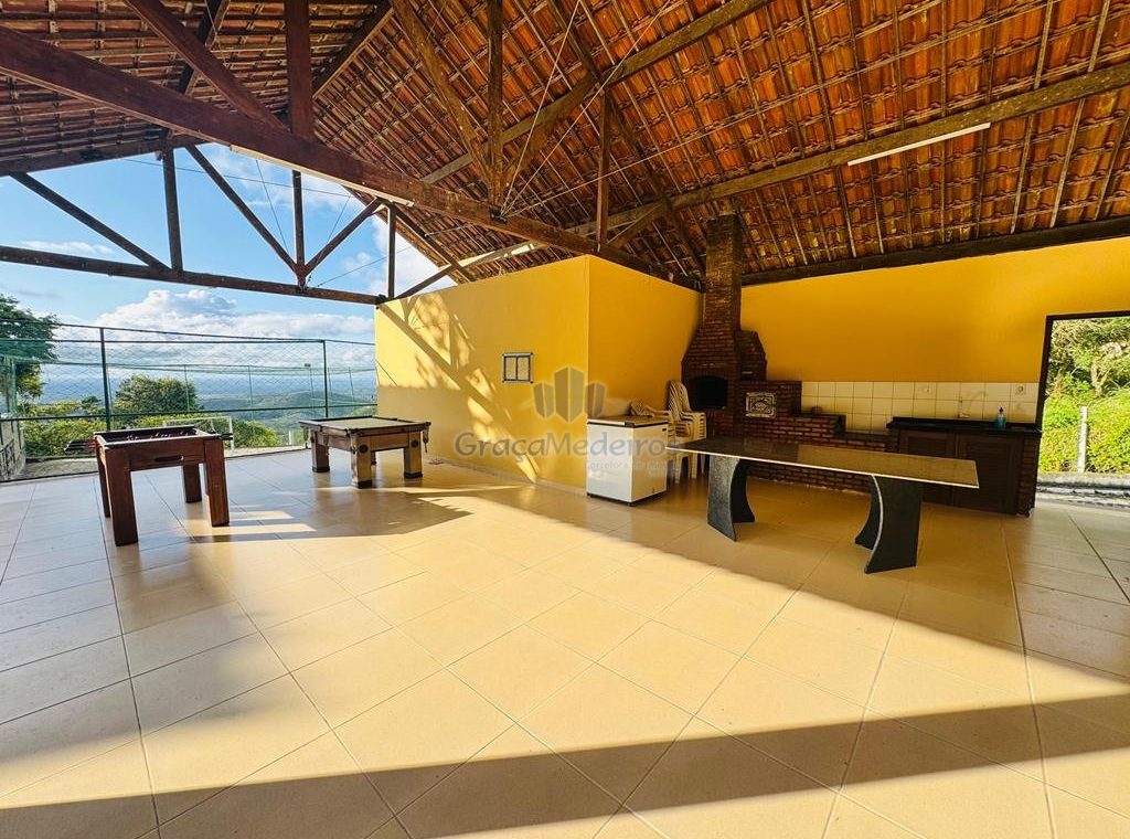 Chalé com 3 quartos sendo 2 suítes com varanda, terraço, espaço gourmet, sala, cozinha, wc social, área de serviço.