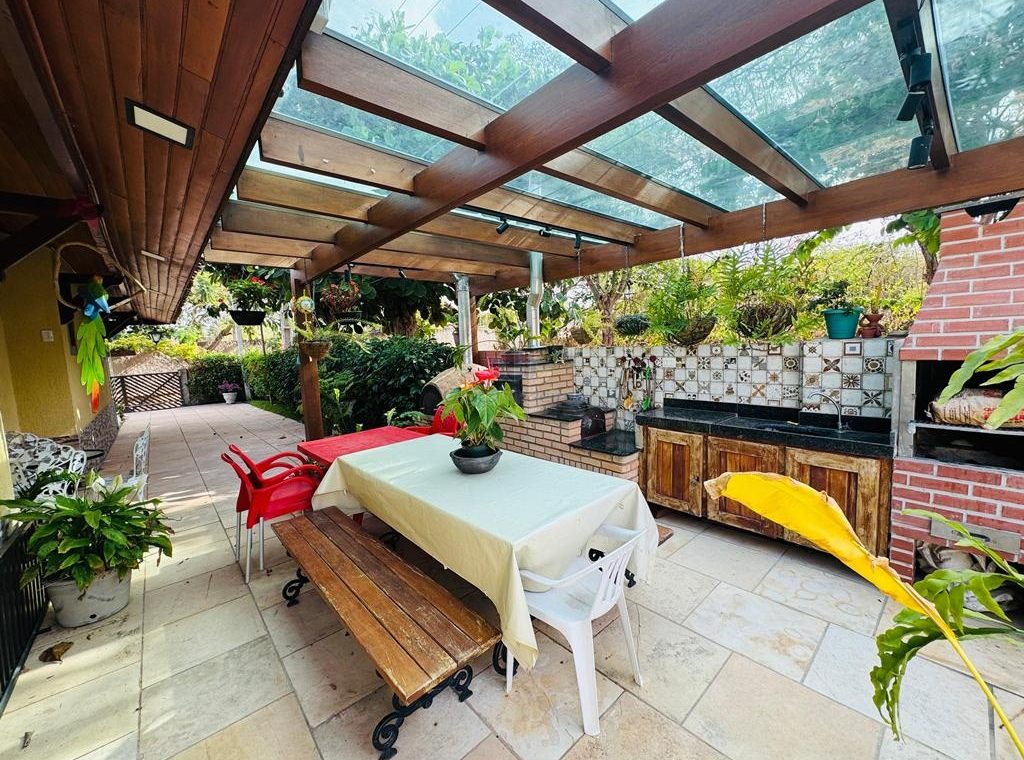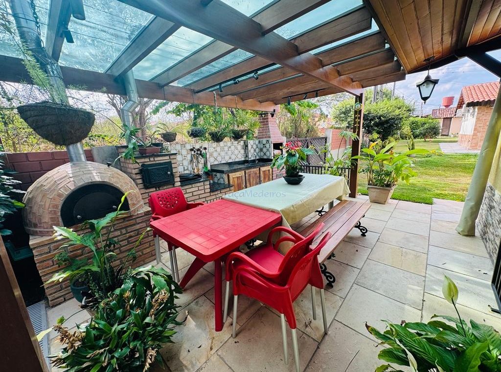 Casa térrea com 99 metros, mobiliada, 4 suítes climatizadas, terraço todo no blindex e climatizado, sala, cozinha americana, pergolado com churrasqueira, forno de pizza e fogão a lenha.