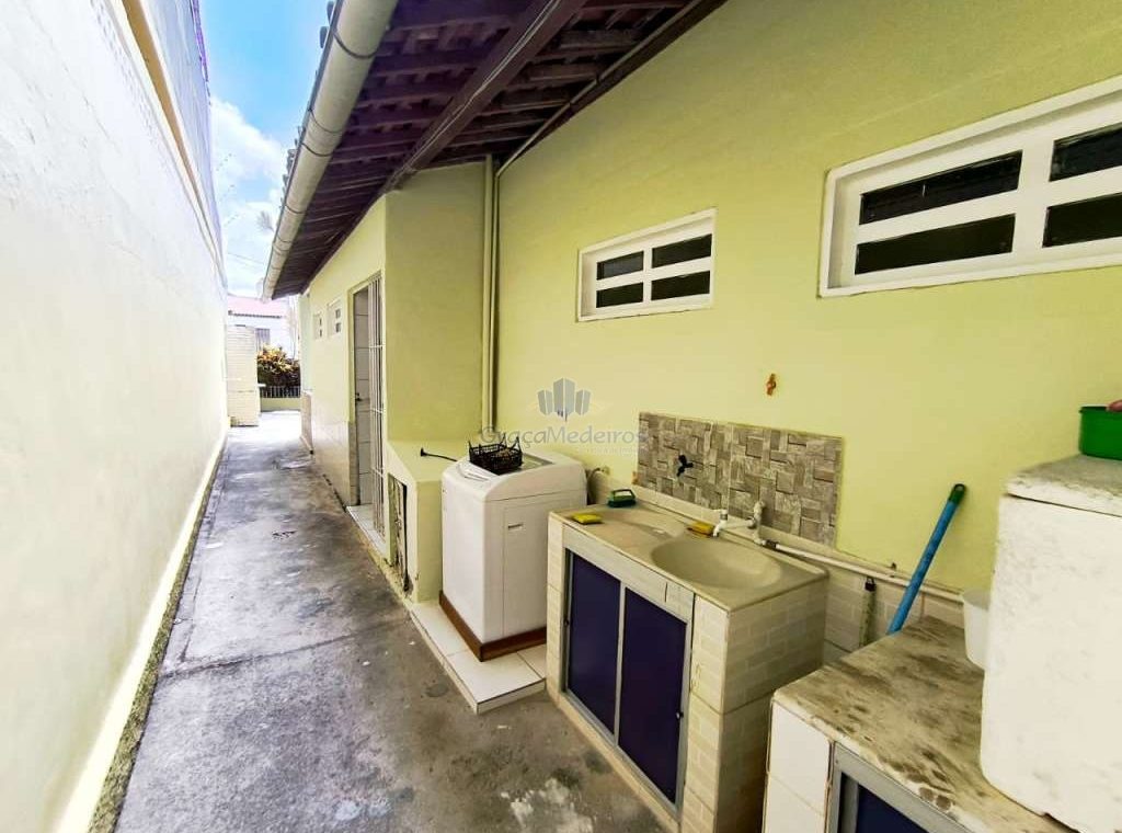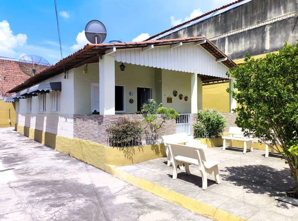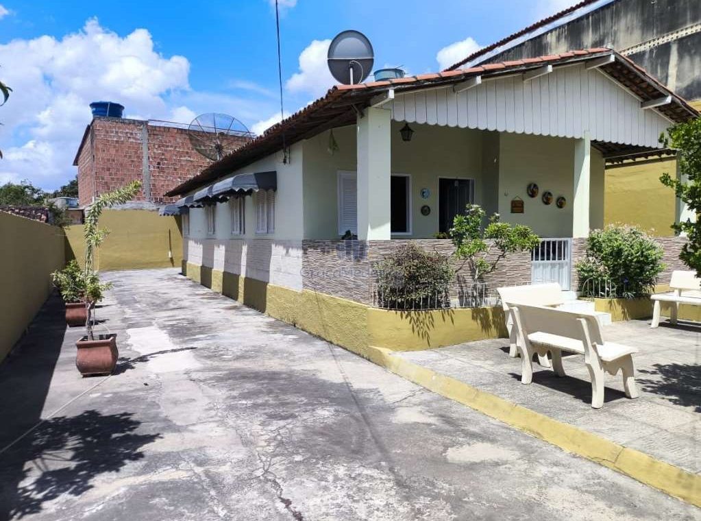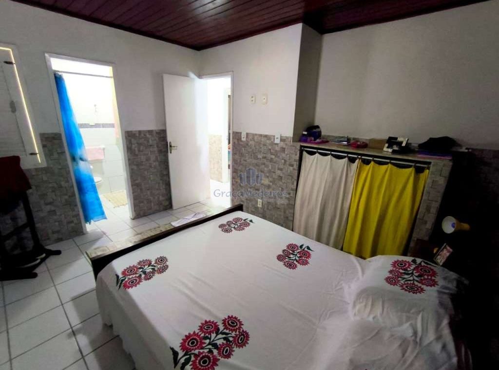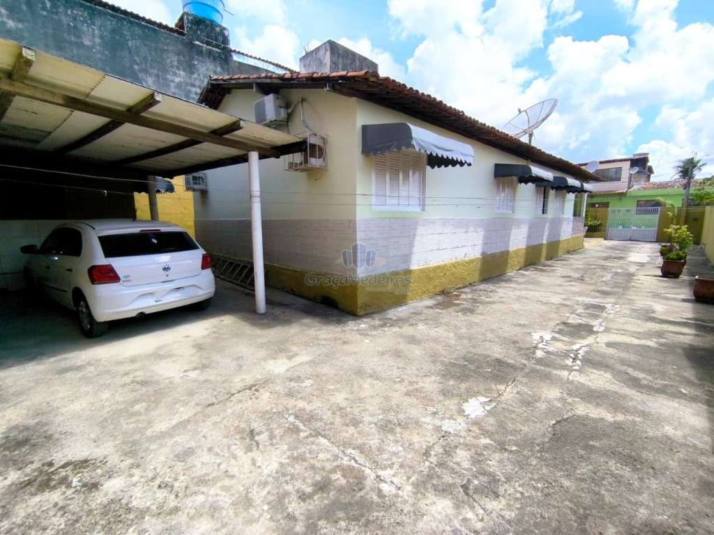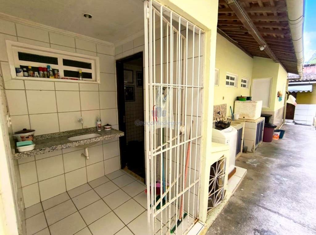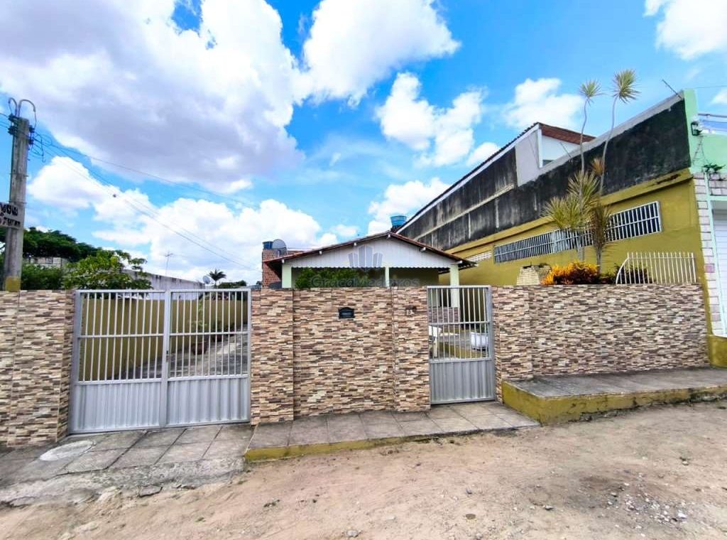 Casa fora de condomínio, construída em terreno de 15 x 30 m, totalizando 450 m², com área construída de 110 m². O imóvel possui três quartos, sendo uma suíte, dependência completa para funcionária, um quarto externo, sala ampla, terraço, área de serviço, cisterna, banheiro social, garagem e laterais livres.