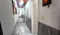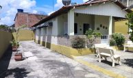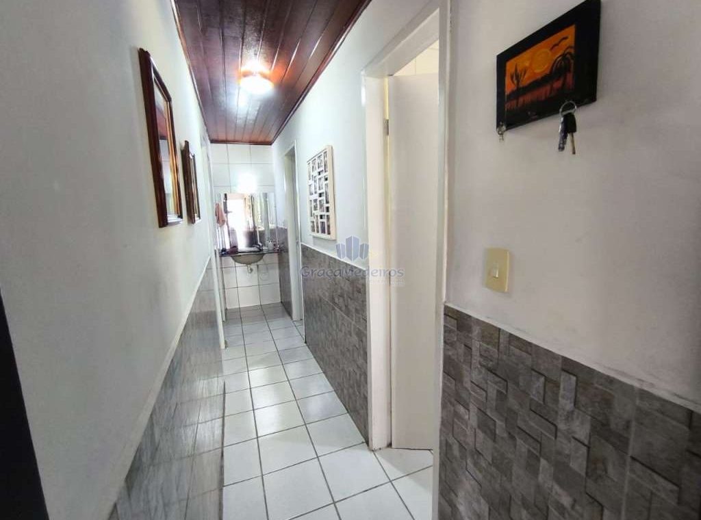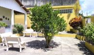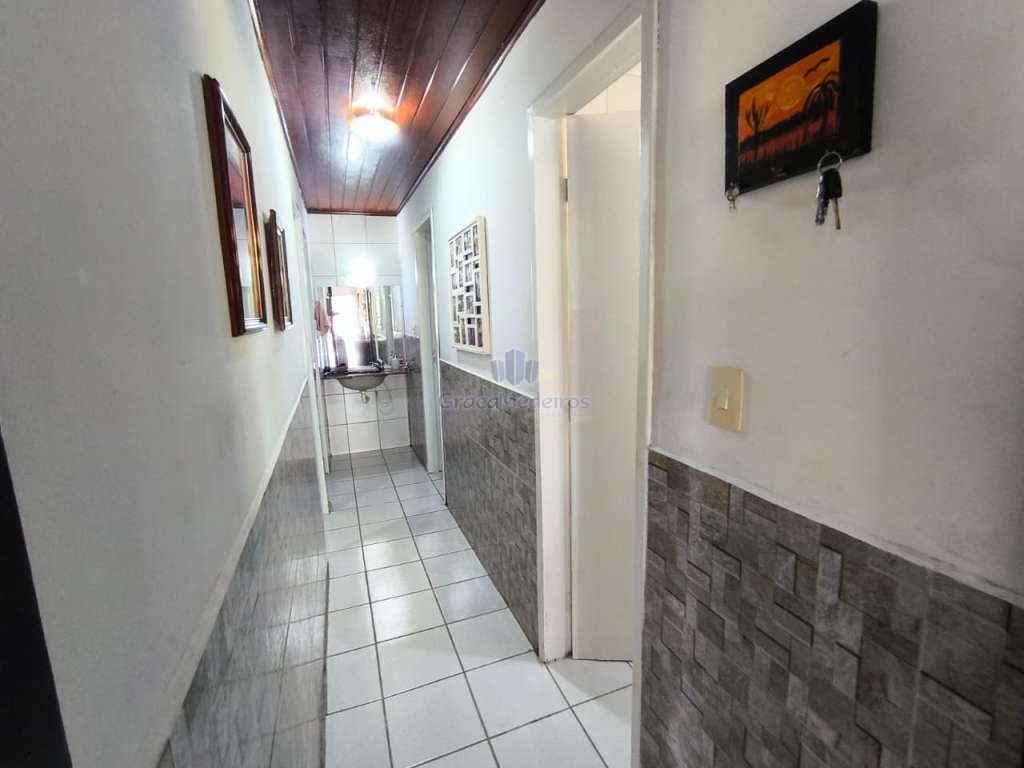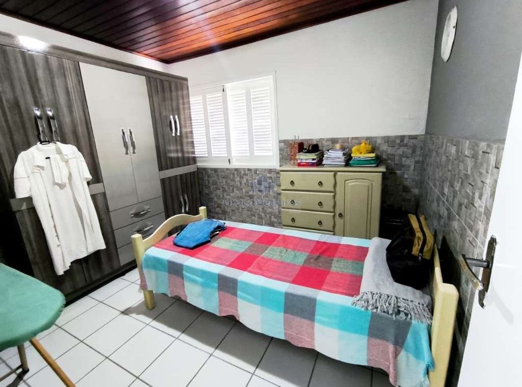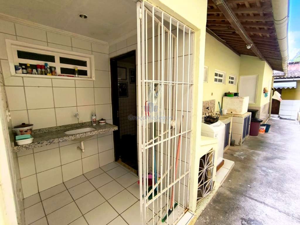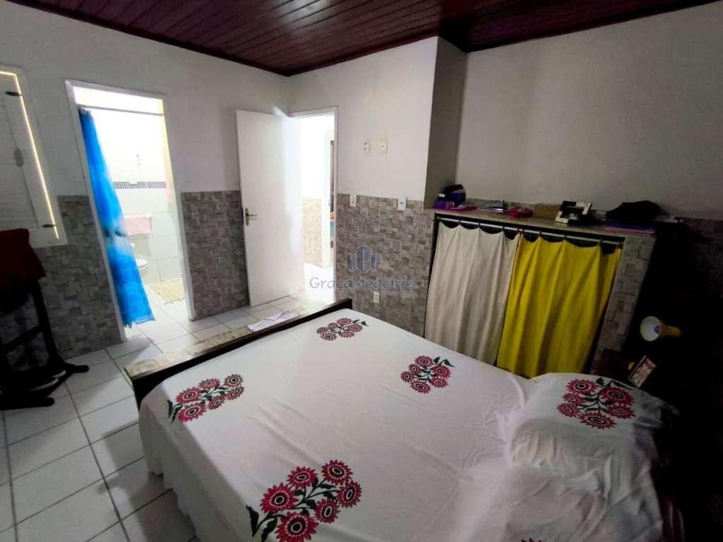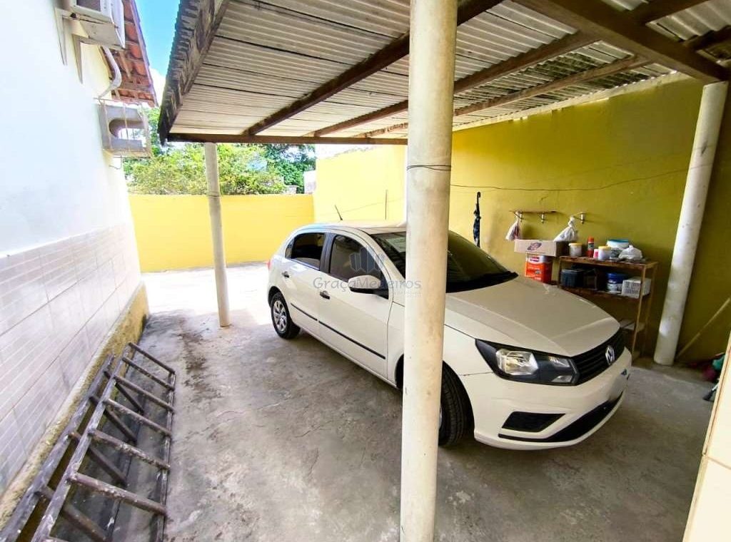 Casa fora de condomínio, construída em terreno de 15 x 30 m, totalizando 450 m², com área construída de 110 m². O imóvel possui três quartos, sendo uma suíte, dependência completa para funcionária, um quarto externo, sala ampla, terraço, área de serviço, cisterna, banheiro social, garagem e laterais livres.