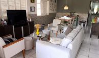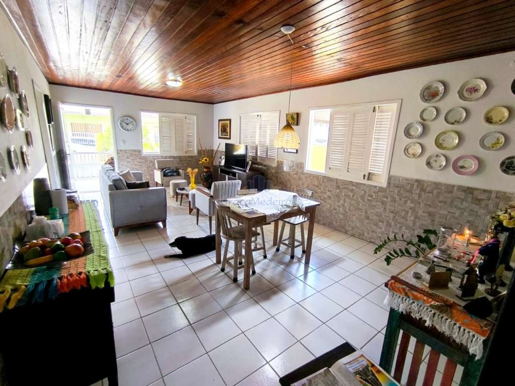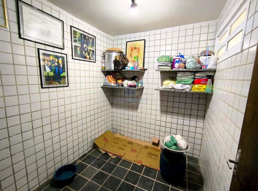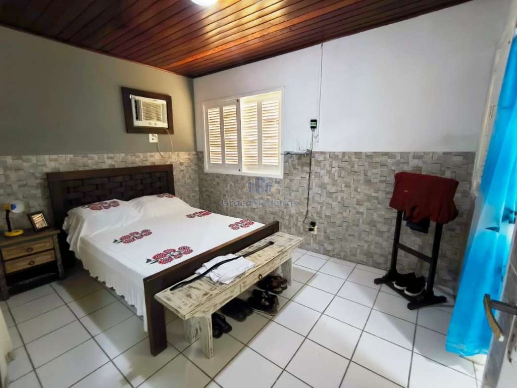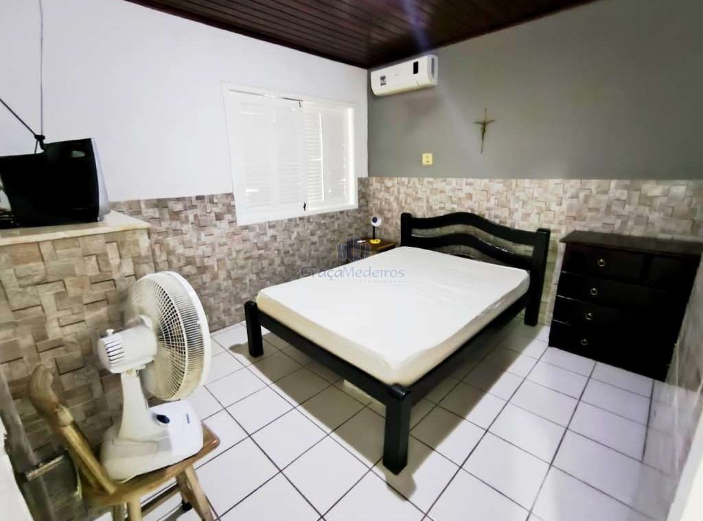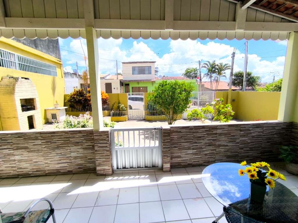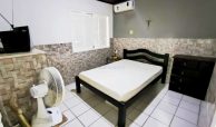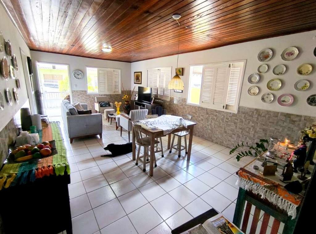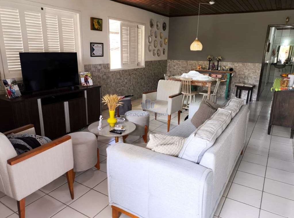 Casa fora de condomínio, construída em terreno de 15 x 30 m, totalizando 450 m², com área construída de 110 m². O imóvel possui três quartos, sendo uma suíte, dependência completa para funcionária, um quarto externo, sala ampla, terraço, área de serviço, cisterna, banheiro social, garagem e laterais livres.