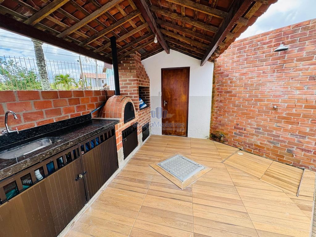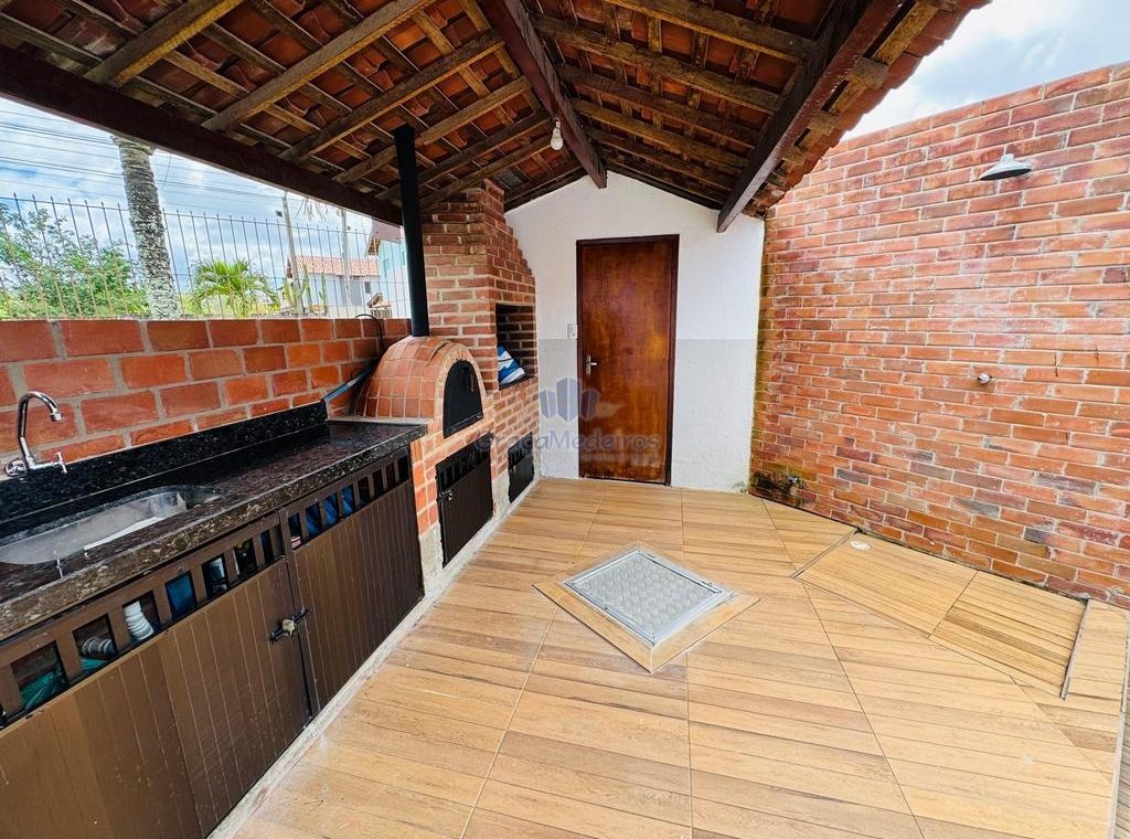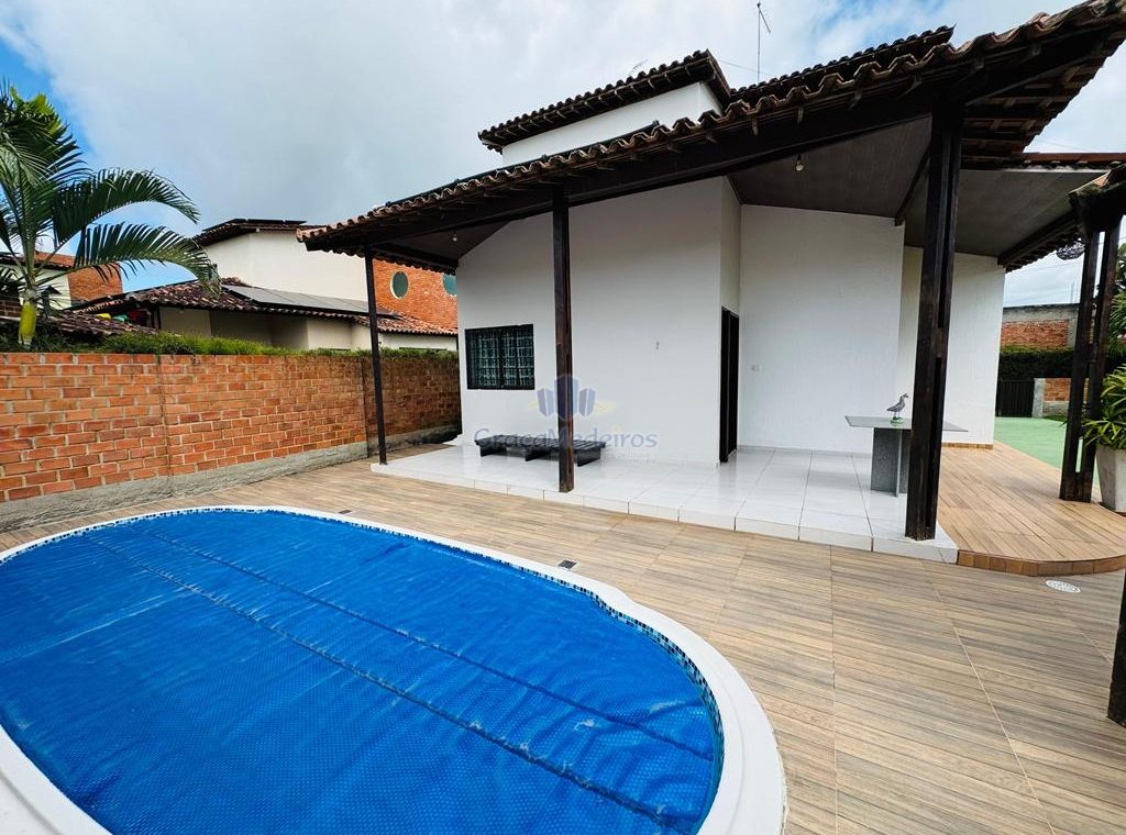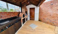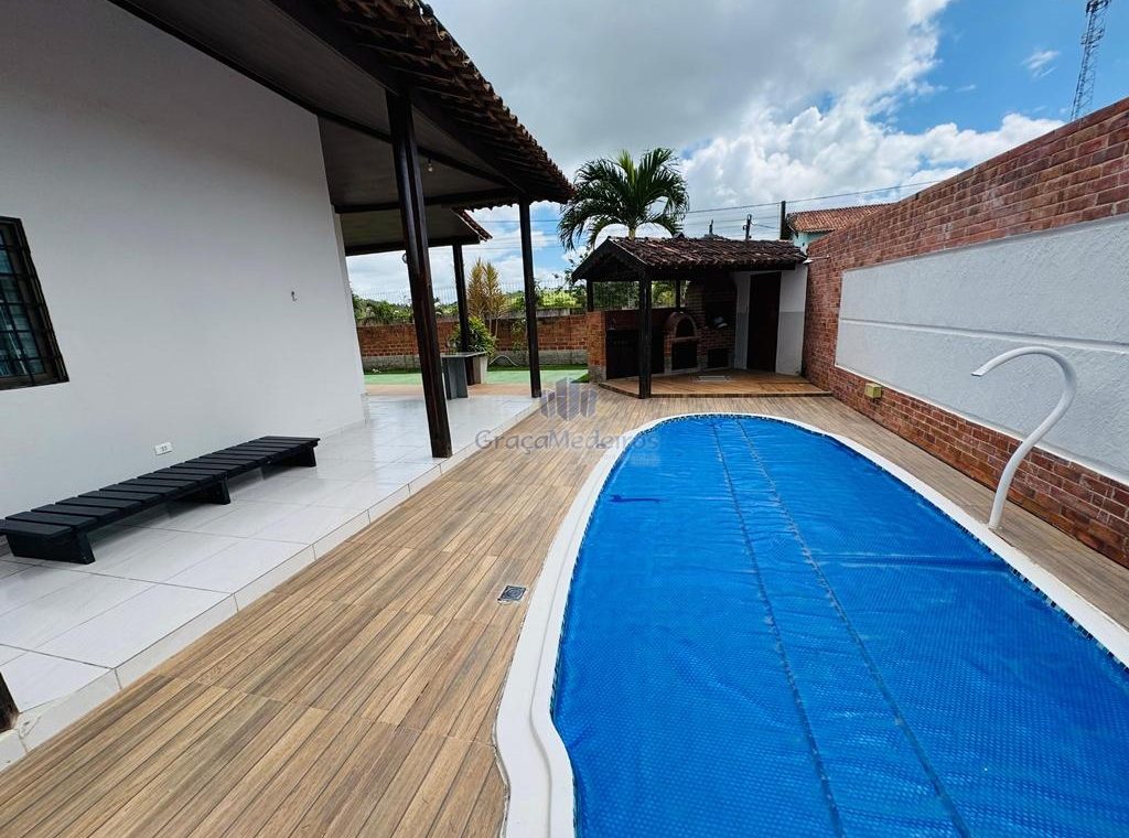 A área externa é um dos grandes diferenciais da casa, com piscina, espaço gourmet completo, incluindo churrasqueira e forno de pizza.