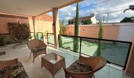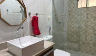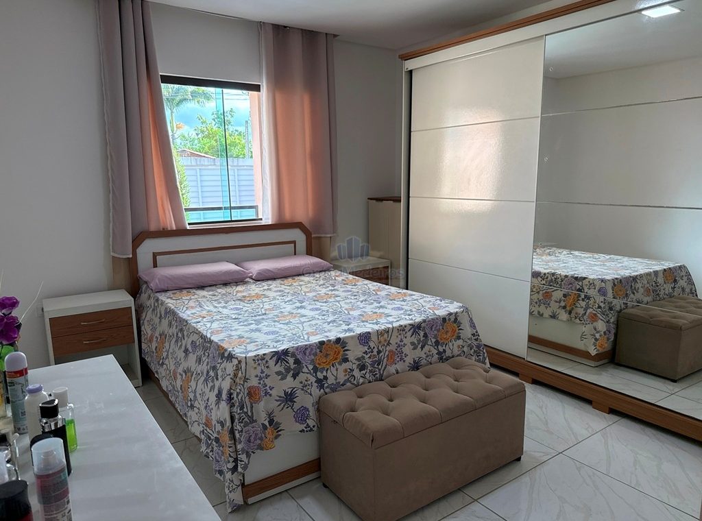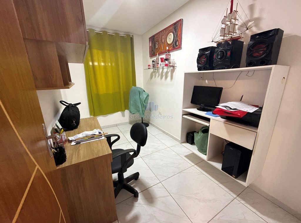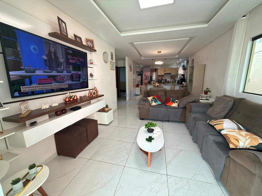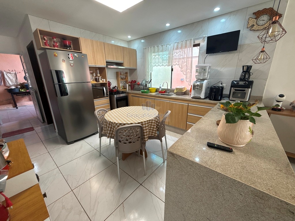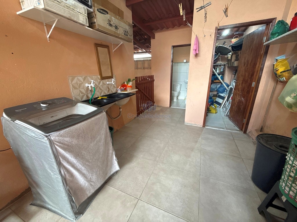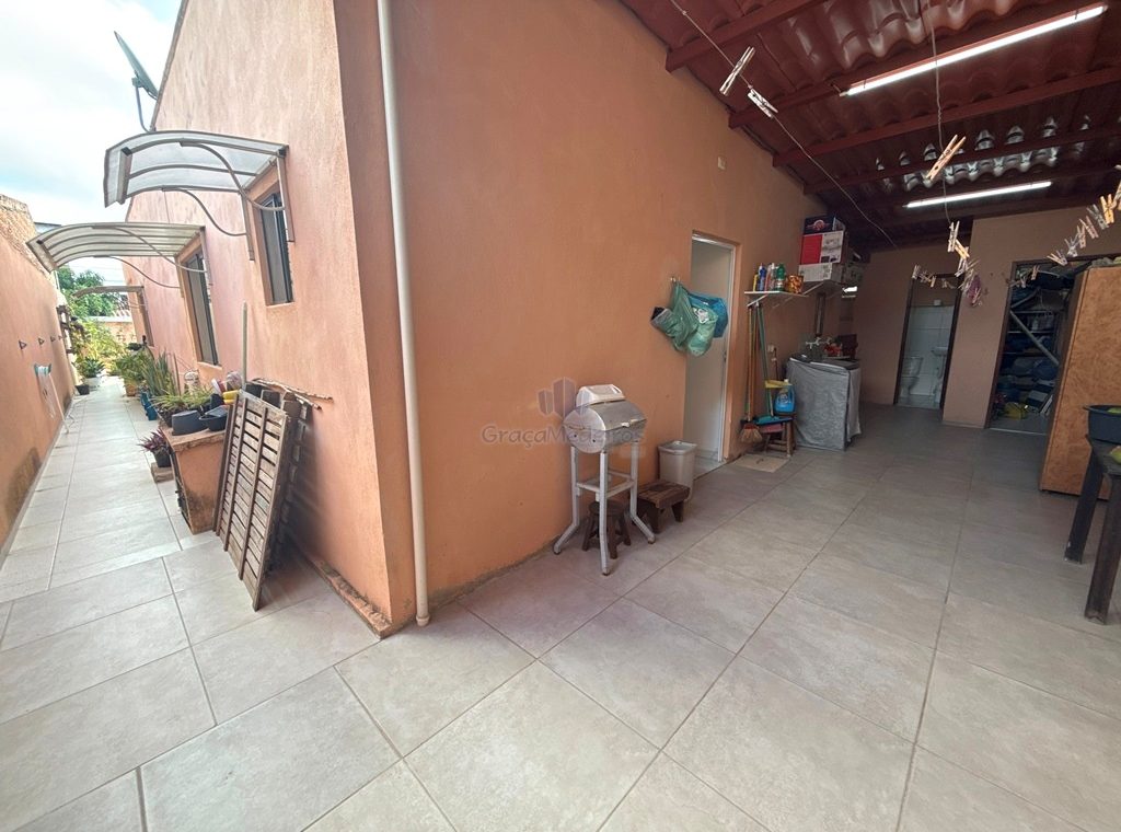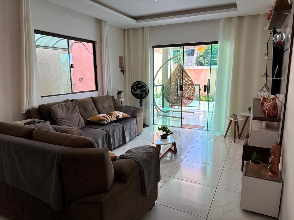 Casa fora de condomínio, com três quartos sendo uma suíte e WC social, com 4 anos de construída em terreno 15×25, garagem coberta para 4 carros, laterais livres, Sala para dois ambientes e cozinha estilo americana, despensa, quintal coberto com área de serviço e WC externo, 115 m² de área construída.