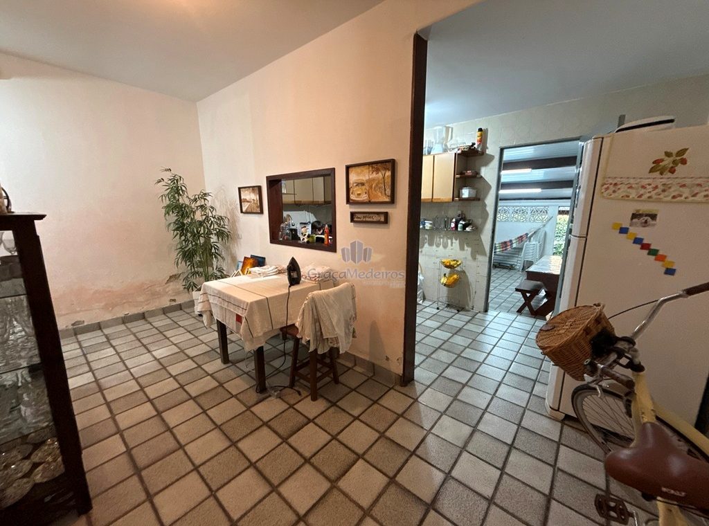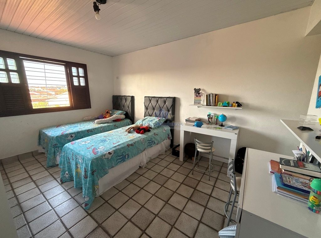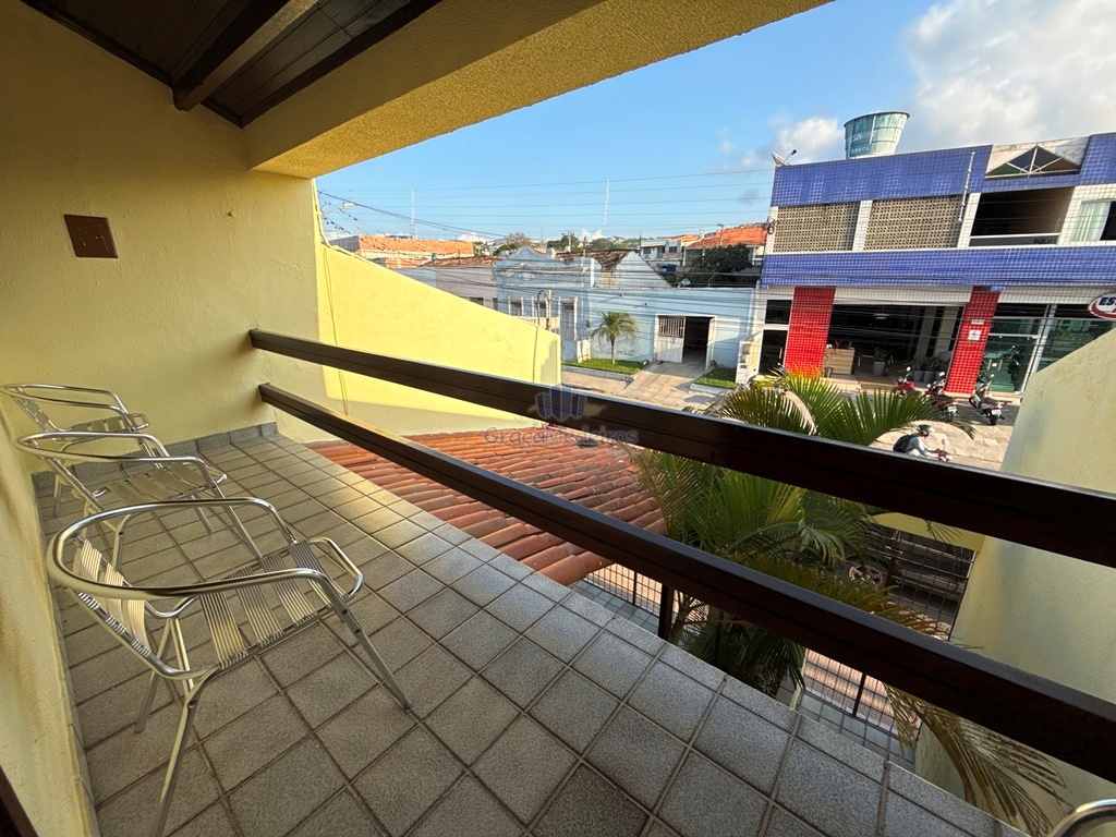 O imóvel com 3 suítes, sendo 1 com varanda, 1 lavabo, sala para 2 ambientes, salão social nos fundos, 1 sala no piso superior, área de serviço.