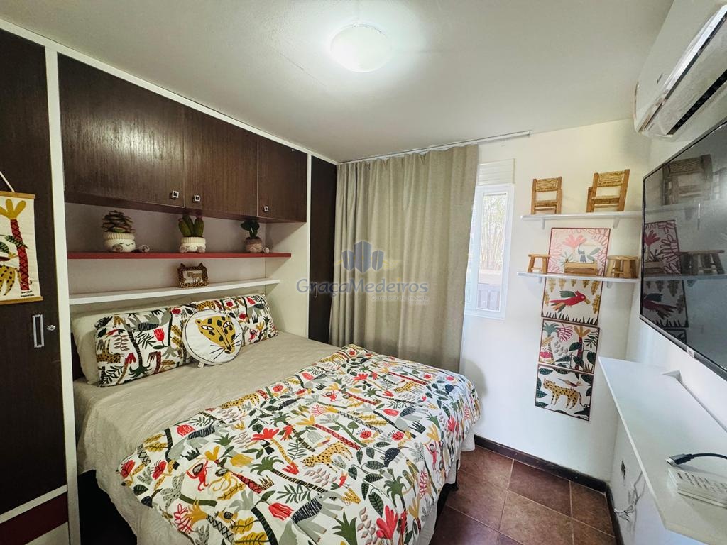 63m² de área construída, 2 quartos sendo 1 suítes, wc social, cozinha,  sala, varanda com vista para o lago.