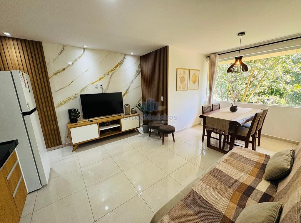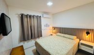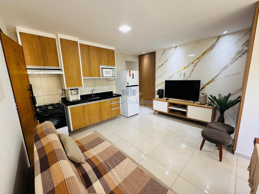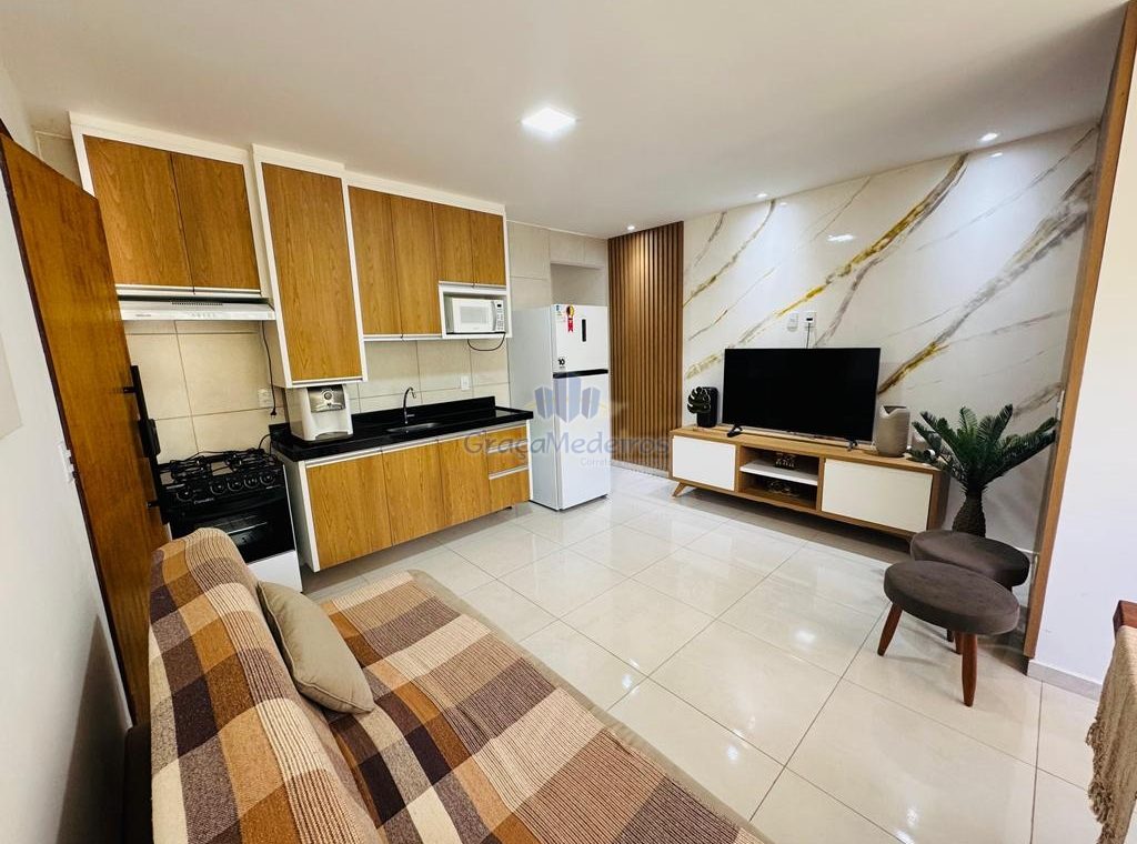 Flat com 34m², funcional e bem distribuído: sala e cozinha integrada, 1 quarto aconchegante e banheiro social.
