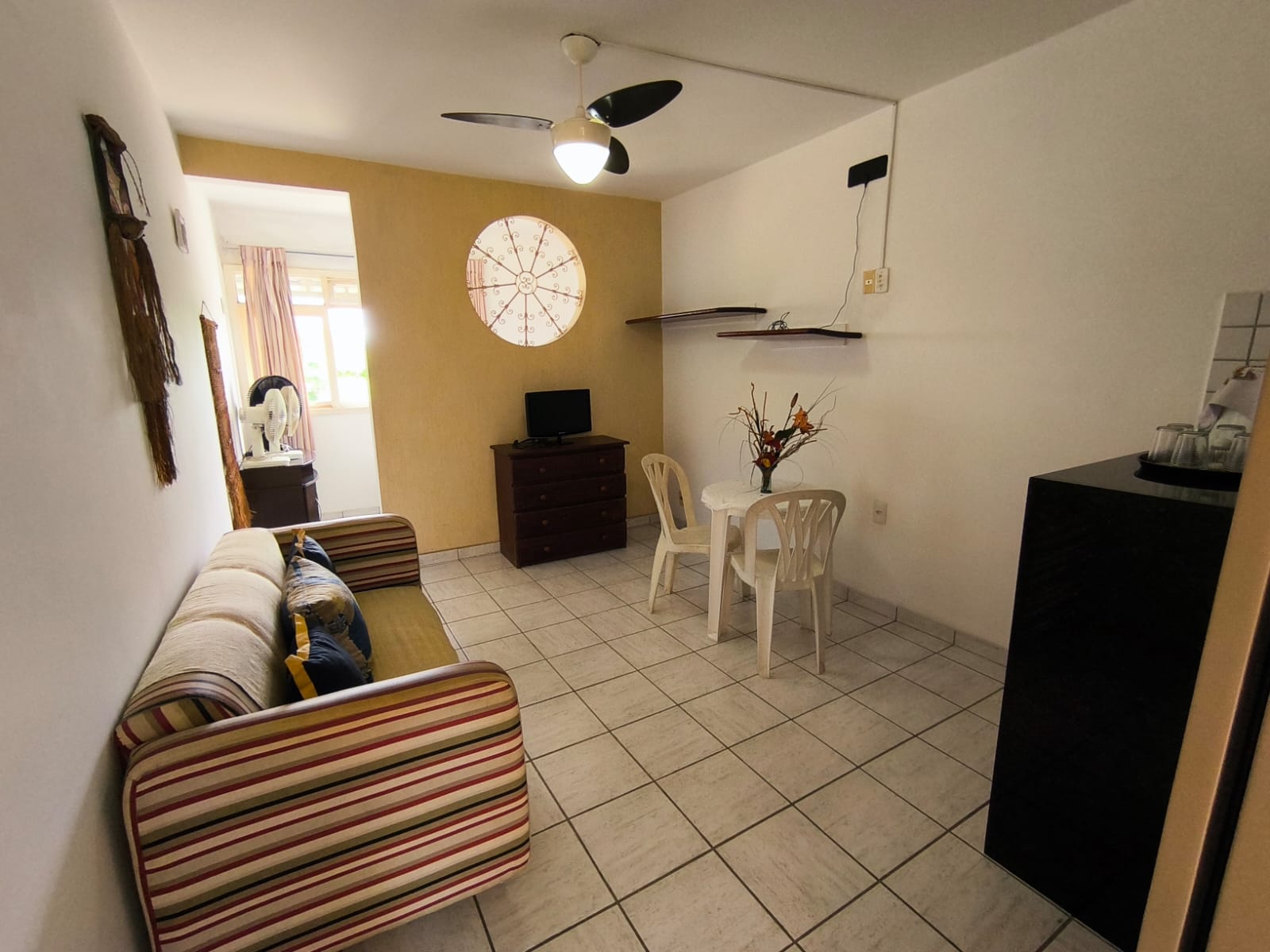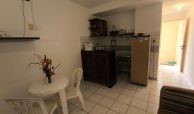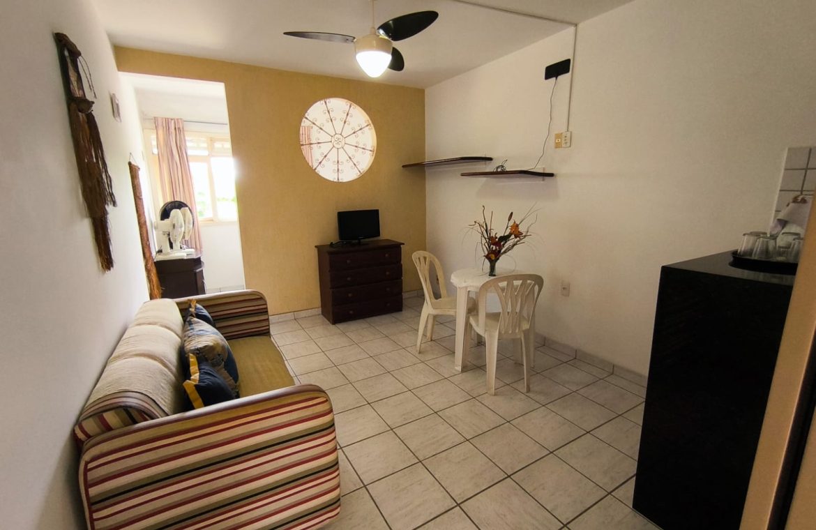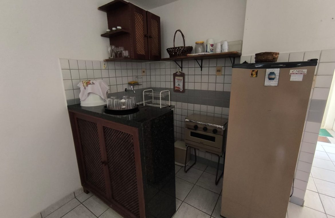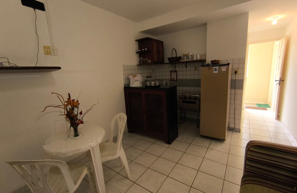 Flat com 24 m², quarto, wc social, sala, cozinha americana.