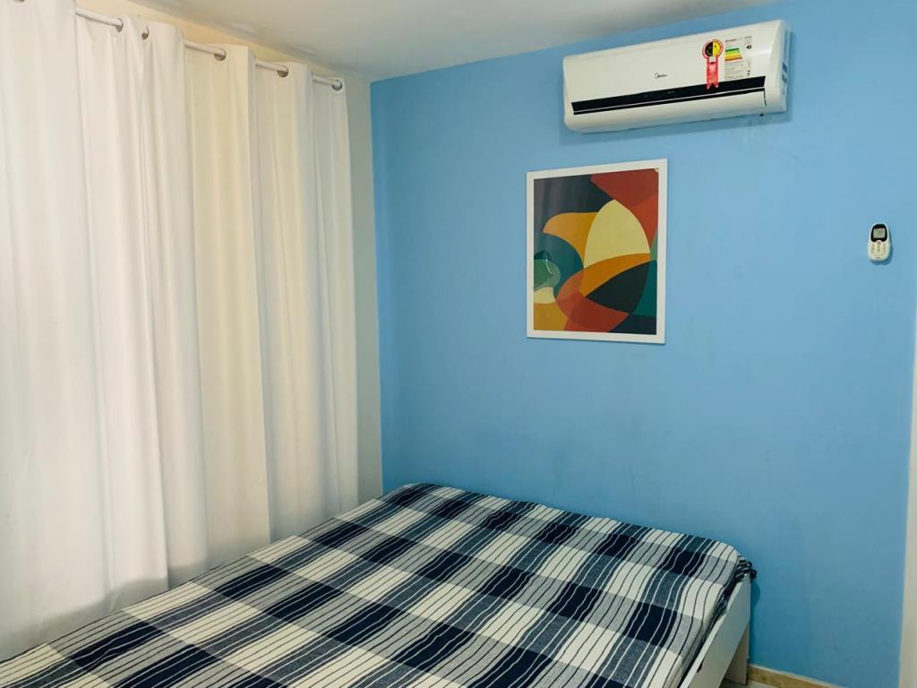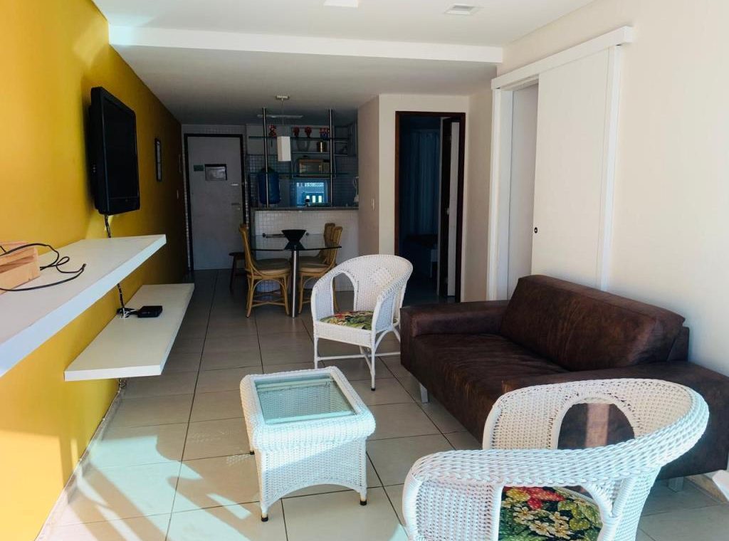 Flat com 3 quartos sendo 1 suíte, varanda, sala, wc social, cozinha americana.